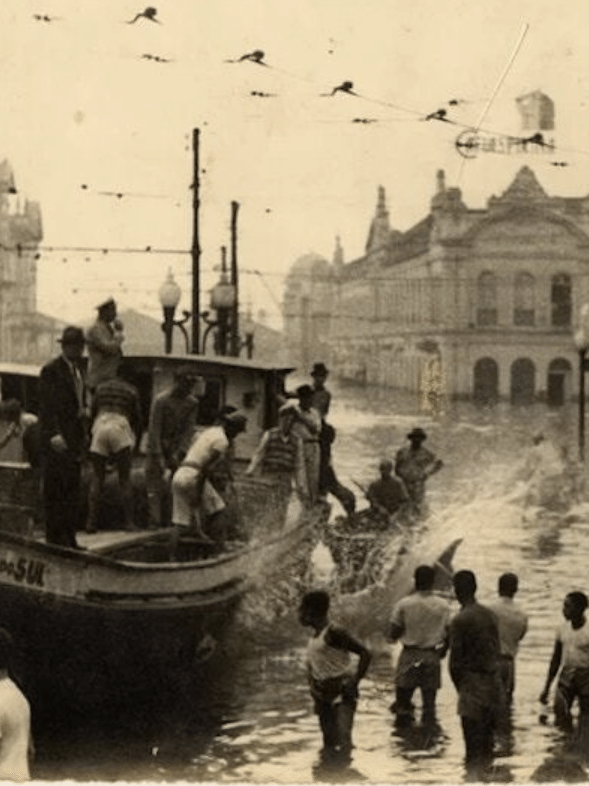 A enchente de 1941. Entrava-se de barco pelo corredor da velha casa de cômodos onde eu morava. Tínhamos assim um rio só para nós. Um rio de portas adentro. Que dias aqueles! E de noite não era preciso sonhar: pois não andava um barco de verdade assombrando os corredores?